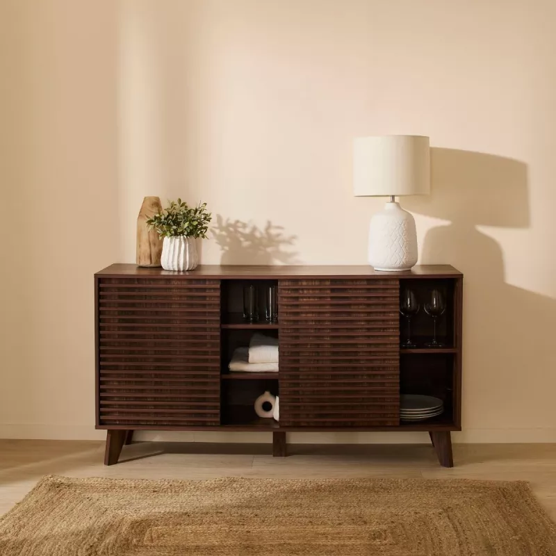 Grâce à son association de lignes simples et de matériaux chaleureux, ce buffet devient un élément décoratif central dans votre intérieur.