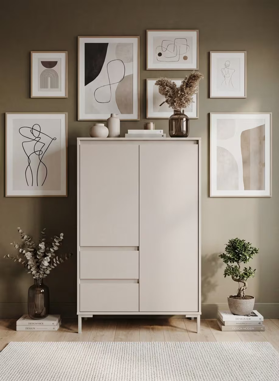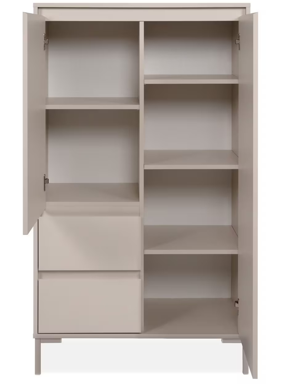 • Rangements : 2 portes battantes avec espace de rangement, 2 tiroirs