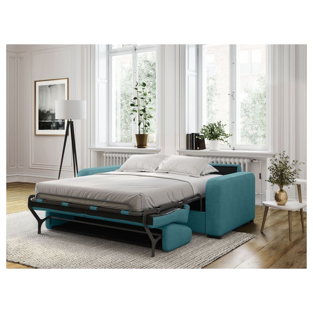 Véritable canapé lit couchage express, renferme un vrai matelas de 140 x 190 cm. Son épaisseur de 14 cm vous garantit un grand confort, pour un couchage régulier comme pour un couchage d’appoint. Avec son système d’ouverture rapide, la mise en place de la position lit se fait en quelques secondes seulement. Grâce à son pratique mécanisme d’ouverture, vous n’avez pas besoin de retirer les coussins de dossier ou d’assise, tout reste en place pour un usage simplifié. Très pratique, le canapé couchage rapide dispose d’un rangement pour couette et oreillers à l’arrière du dossier.