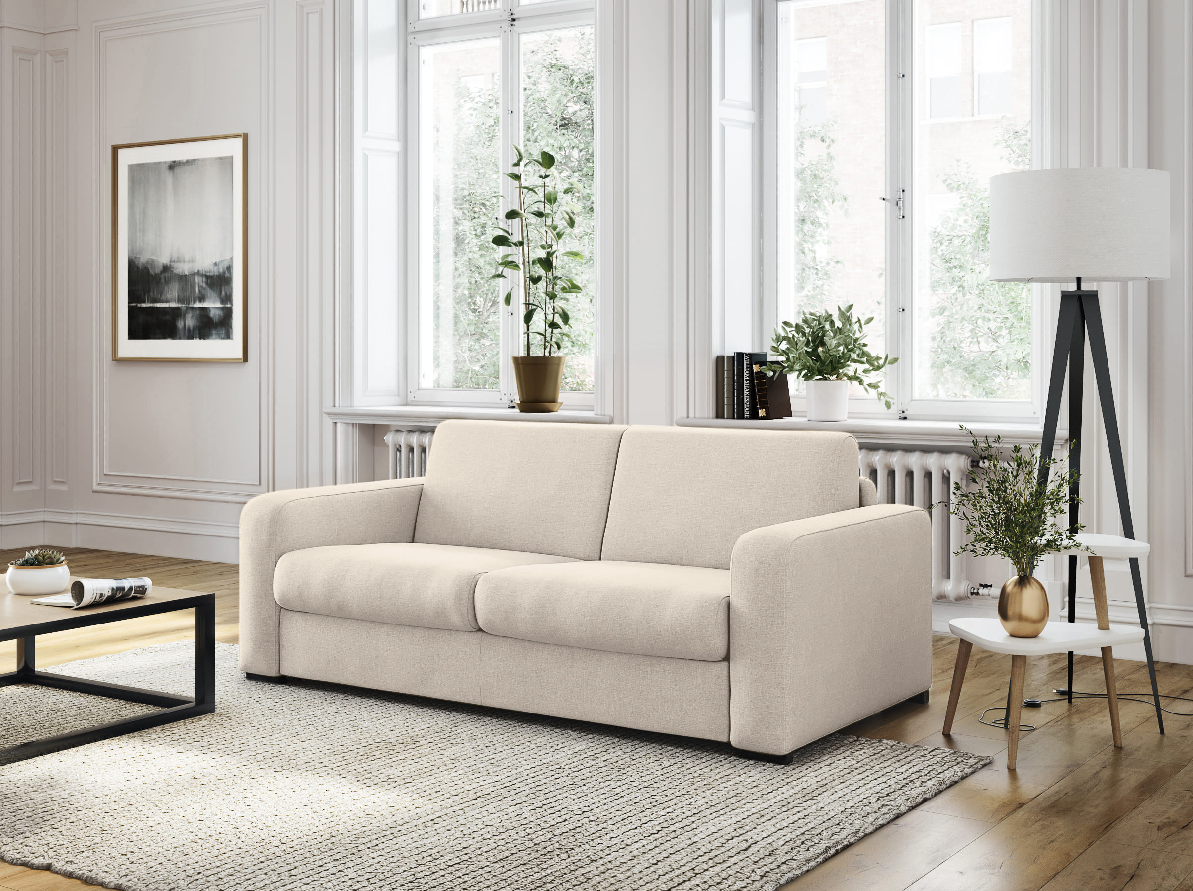 Le canapé convertible express 3 places arbore un design moderne qui saura s’intégrer facilement dans tout type d’intérieur. Ses lignes chaleureuses et son revêtement en tissu rendront votre pièce accueillante et apporteront une ambiance cosy à votre salon.