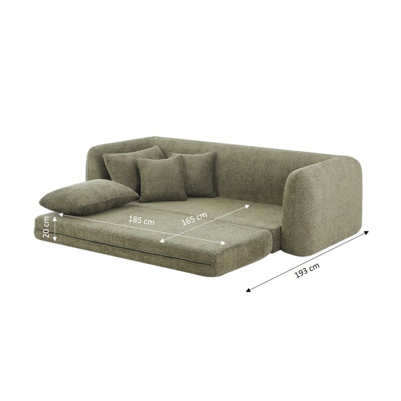 Canapé droit compressé convertible Morpho 3 places tissu bouclette vert