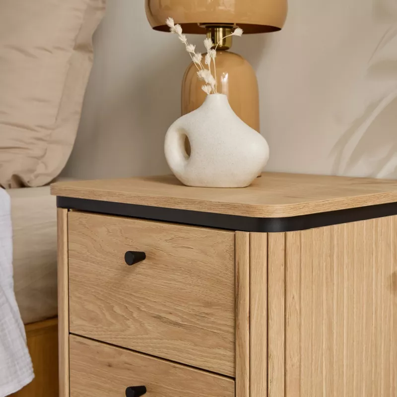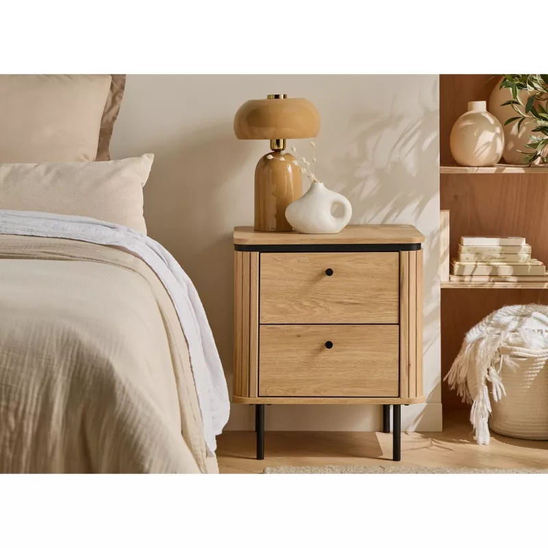 Chevet bois beige arrondie 2 tiroirs