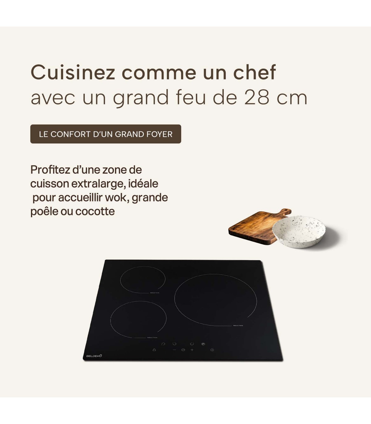 Vous l’aurez compris, notre table de cuisson induction 3 feux 5800 W est le choix parfait si vous souhaitez combiner de belles performances et un foyer aux dimensions extralarges.