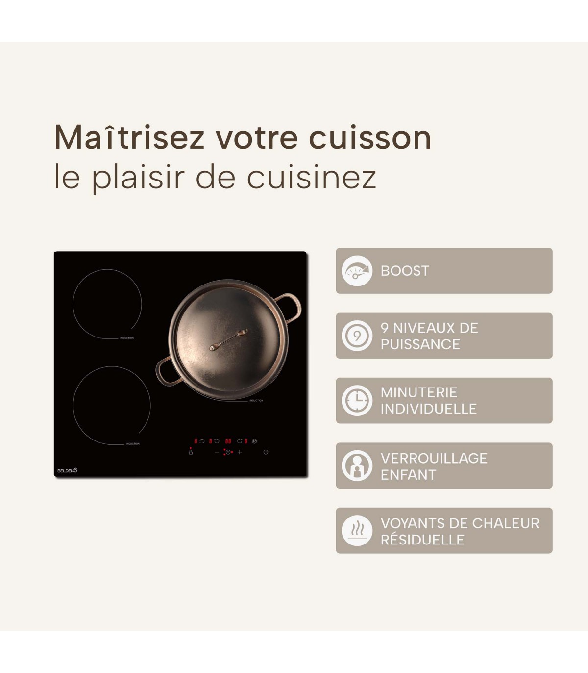 Le système électromagnétique de l’induction évite toute mauvaise surprise ! Vos feux ne peuvent se mettre en marche que si un ustensile adapté est posé sur la source de chaleur. De plus, notre plaque est dotée de belles fonctionnalités comme une minuterie individuelle, le dispositif de verrouillage enfants et les voyants de chaleur résiduelle. À vous la tranquillité d’esprit !